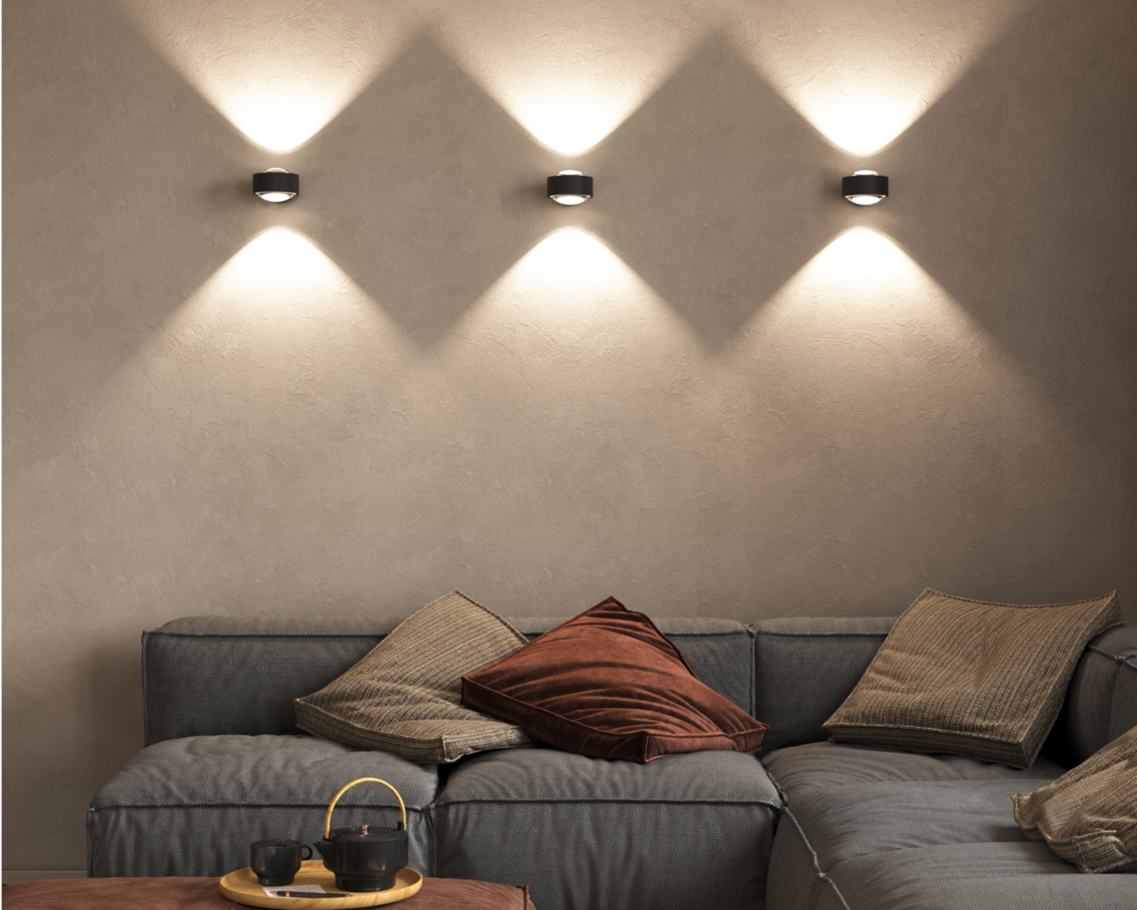 Neu relaunched sind alle Puk Outdoor Leuchten mit neuer Oberfläche und Haptik in Feinstruktur. In eigener Manufaktur werden die Leuchten weiß matt, schwarz matt, anthrazit und soft braun gepulvert.